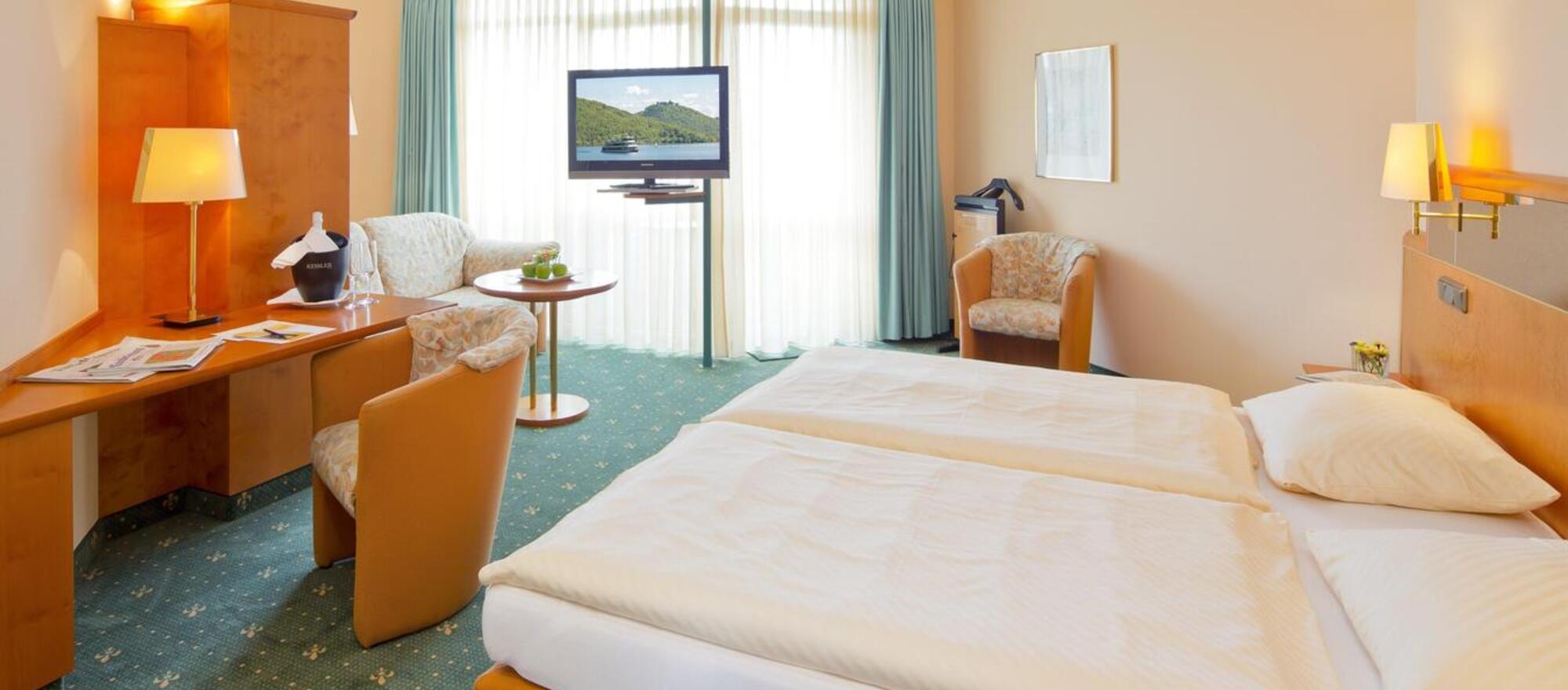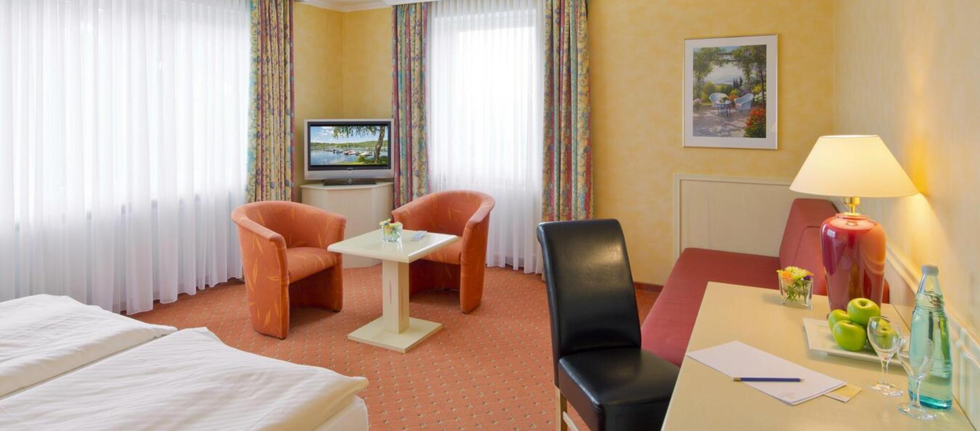 Hiking, golf, comfort and hospitality - our Ringhotel Roggenland on the beautiful Edersee leaves nothing to be desired. For active guests, the Urwaldsteig is a supherb hiking trail. There is also an extra path for cyclists around. How about a dip in the cool water to cool off? Experience pure culture in Waldeck Castle, which is only 200 m away, or in the Unesco World Heritage Mountain Park Willhelmshöhe in Kassel. You will find time to regenerate in our beautiful wellness area and on our terrace with a wonderful view. Eventful days make you hungry! Do you have an appetite for a healthy snack? You have come to the right place in our restaurant. Candle-light dinners highlight the elegant side of our versatile cuisine. Guests should not miss a visit to the Bar Galerie or Backstube to enjoy a nightcap.